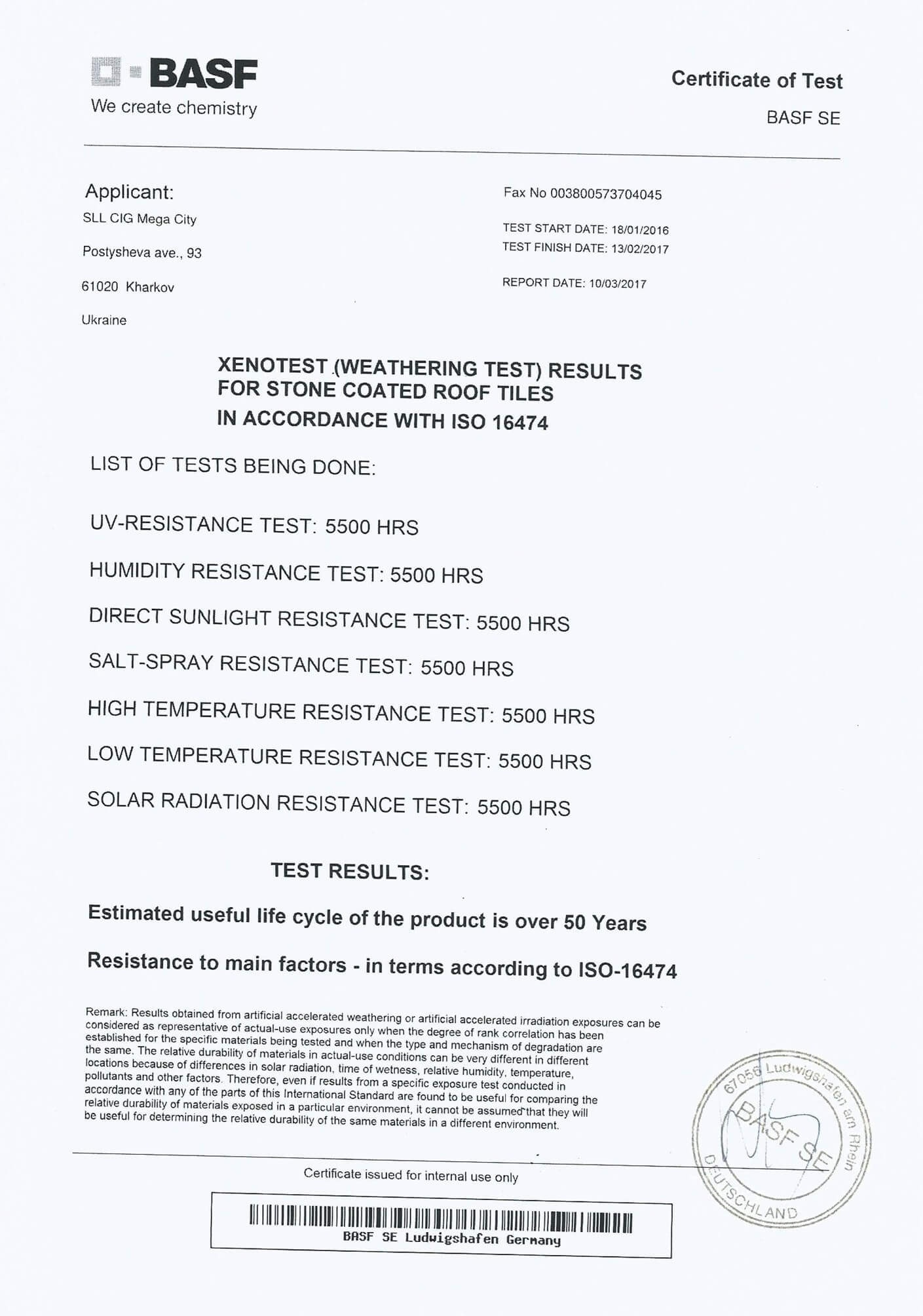 Для поддержания качества композитной черепицы на должном уровне производитель систематически проводит лабораторные исследования сырья и готовой продукции, среди которых также климатические испытания концерном BASF.
